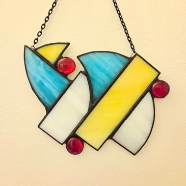 Weekly stained glass classes at Carolina Stained Glass are taught by our employee Cara Davis through her business Flux & Flow Stained Glass. Registration is managed through her website, linked below. Above are a few of her class projects, there are many more options available!