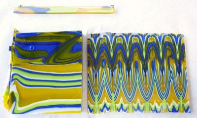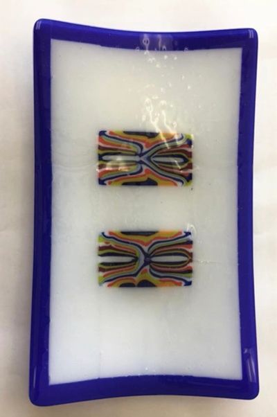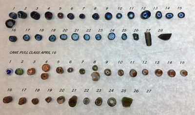 Pulled cane created in one of our classes. These can be used as great design elements in fused glass projects.